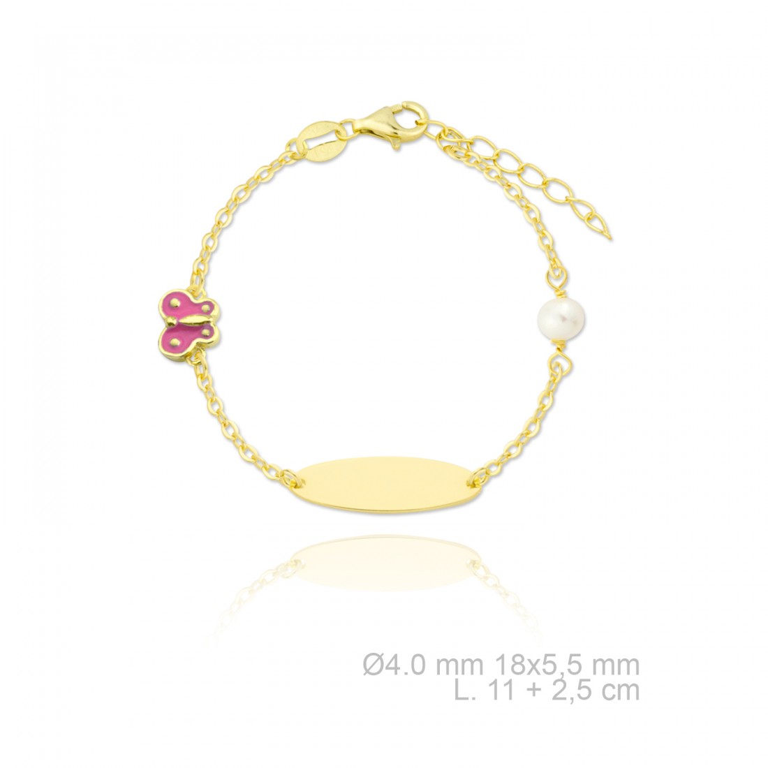 Esclava de Plata de Ley chapada en oro con mariposa de esmalte rosa.