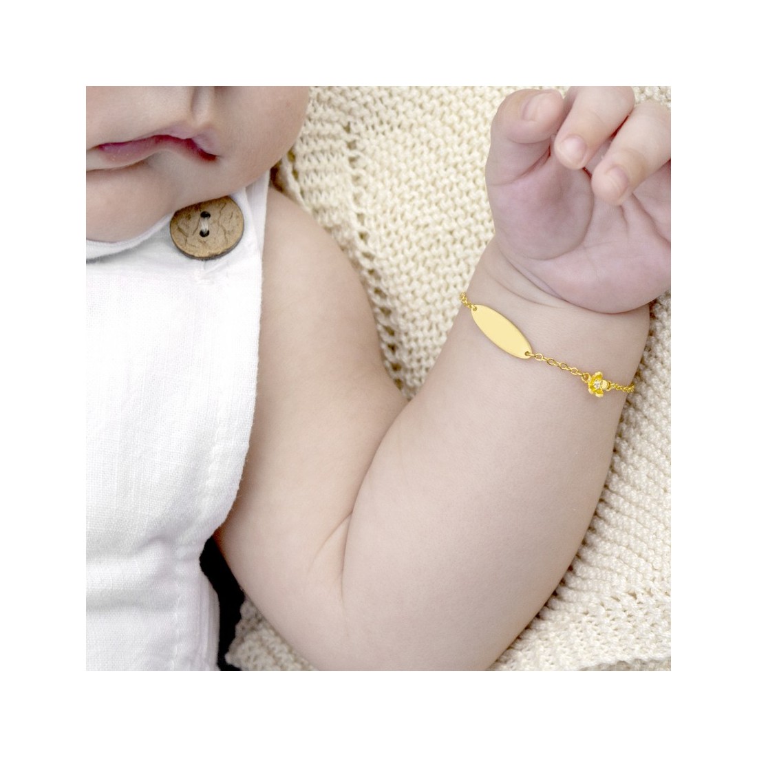 Esclava de Plata de Ley chapada en oro con una flor de circonita blanca de 4mm.