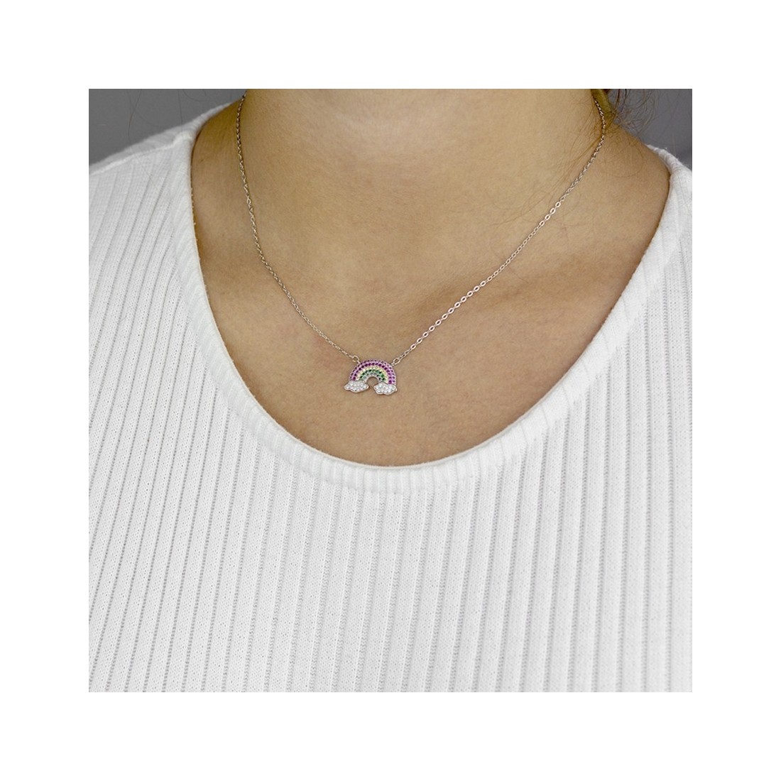Gargantilha em Prata Esterlina e Zircões (Madrepérola)